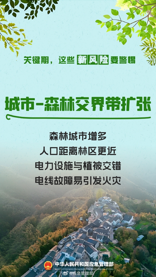 陽春三月,春意盎然。春季氣溫逐漸升高,降水偏少,大風(fēng)天氣增多。伴隨春耕生產(chǎn)、踏青祭祀等生產(chǎn)生活用火增多,森林火災(zāi)風(fēng)險(xiǎn)增高。近期,多地陸續(xù)進(jìn)入春季森林防火關(guān)鍵期,以下新風(fēng)險(xiǎn)要警惕!