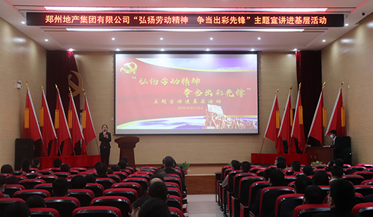 為進(jìn)一步深化市國資委“黨的創(chuàng)新理論萬場宣講進(jìn)基層”活動,培育和踐行社會主義核心價(jià)值觀,10月14日下午,鄭州地產(chǎn)集團(tuán)“弘揚(yáng)勞動精神 爭當(dāng)出彩先鋒”主題宣講活動在西流湖公司中原新區(qū)聯(lián)合黨委基層黨校成功舉辦。集團(tuán)宣講團(tuán)成員、西流湖公司黨支部、鄭地發(fā)展公司員工及中原新區(qū)項(xiàng)目參建單位代表共120余人參加活動。