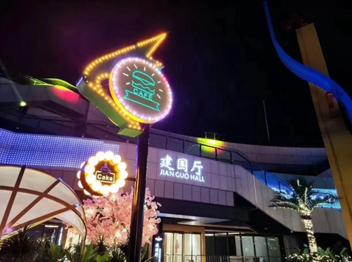 星空夜市融合位于奧體中心核心區(qū)域東下沉廣場,毗鄰長椿南路,融合市井長巷的煙火氣,以鄭地奧體建國飯店高標(biāo)準(zhǔn)餐飲、服務(wù)水準(zhǔn)為依托,結(jié)合地域特色,提煉美食精華,為廣大市民提供超多品類風(fēng)味美食。同時(shí),傾情打造雨林風(fēng)夢幻空間美陳,邀您品美食之余,于霓虹造景中享受拍照打卡樂趣,解鎖更多夜市新玩法!