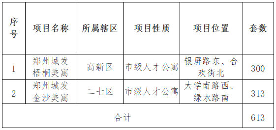 按照《鄭州市人才公寓管理暫行辦法》(鄭政辦〔2023〕11號(hào))要求,現(xiàn)將2023年我市第六批人才公寓配租事項(xiàng)公告如下:
