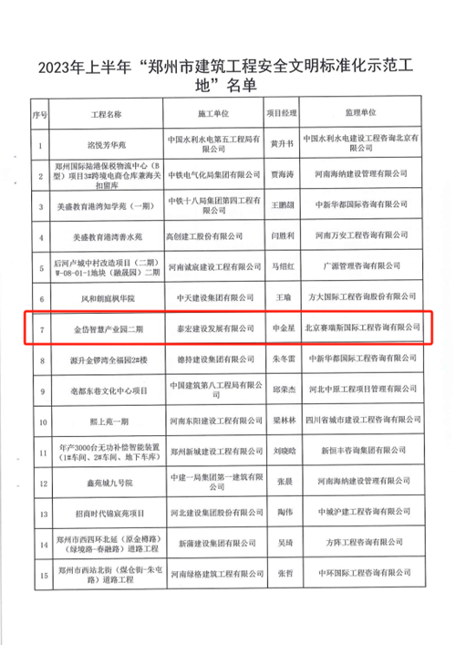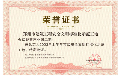 近日,經(jīng)鄭州市城鄉(xiāng)建設(shè)局評選,河南鄭地科創(chuàng)產(chǎn)業(yè)發(fā)展有限公司投資建設(shè)的金岱智慧產(chǎn)業(yè)園二期項(xiàng)目榮獲“2023年上半年鄭州市建筑工程安全文明標(biāo)準(zhǔn)化示范工地”榮譽(yù)稱號。