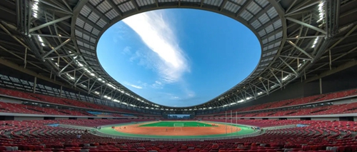 鄭州奧體中心體育場(chǎng)采用了“三角形巨型桁架+立面桁架+網(wǎng)架+大開口車輻式索承網(wǎng)格”的組合結(jié)構(gòu)體系設(shè)計(jì)。82米跨三角形巨型桁架,重量達(dá)1300噸,為同類之最;大開口車輻式索承網(wǎng)格結(jié)構(gòu)為全球最大懸挑,設(shè)計(jì)最大懸挑54.1米,其中,環(huán)向密封拉索直徑為130毫米、單個(gè)索夾重達(dá)6.5噸,均為國(guó)內(nèi)之最。項(xiàng)目整體形成的《鄭州奧體中心綜合建造技術(shù)》,成果總體達(dá)到國(guó)際先進(jìn)水平。