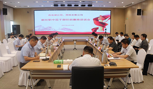 6月19日下午,西流湖公司、鄭地發(fā)展公司召開新任中層干部任前廉政談話會。公司領(lǐng)導(dǎo)班子成員、中層正副職人員及新任職中層干部人員共計二十余人參加,會議由公司黨支部書記、董事長、總經(jīng)理吉獻亮主持。會議要求新任中層干部要認清定位、做好表率,要對下負責(zé)、嚴格管理,以強烈的事業(yè)心和主人翁姿態(tài),主動扛大梁、挑重擔(dān)、負重責(zé)、做貢獻;要敢于擔(dān)當作為,勇于攻堅克難,要以踏石留印、抓鐵有痕的勁頭理清思路、突出重點、轉(zhuǎn)變作風(fēng)、創(chuàng)新機制,以主動擔(dān)當、奮發(fā)有為的姿態(tài)扛起助力城市建設(shè)發(fā)展的大旗,為鄭州國家中心城市建設(shè)增光添彩。