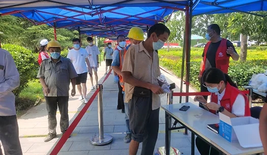 由于龍湖社區(qū)內(nèi)工地?cái)?shù)量多,人員流動(dòng)性大,檢測(cè)人群普遍年齡偏大,給檢測(cè)工作著實(shí)帶來(lái)一定難度。尤其是有一位工友,左腿受傷骨折,打著石膏拄著拐杖來(lái)做檢測(cè),他沒有拿身份證且隨行人員都不會(huì)熟練操作手機(jī)掃碼,但在志愿者的引導(dǎo)下,從帶領(lǐng)他走愛心通道、到協(xié)助錄入信息、幫助他們?nèi)私仄亮舸嬉约白罱K完成檢測(cè),志愿者認(rèn)真的工作態(tài)度得到了工友和社區(qū)工作者的高度贊揚(yáng)。檢測(cè)期間,志愿小隊(duì)統(tǒng)一按照社區(qū)的調(diào)度安排,各司其職,專人專崗,一切行動(dòng)聽指揮,做到了各環(huán)節(jié)專人負(fù)責(zé)和快速反饋,整體檢測(cè)工作快速有序的進(jìn)行,僅在15日一天,社區(qū)就完成了4000余人次的檢測(cè)。來(lái)自龍湖社區(qū)的居民表示,第四次核酸檢測(cè)相較于前幾次效率明顯提高且秩序良好,從最初的半個(gè)小時(shí)以上到現(xiàn)在的幾分鐘,這不僅是效率質(zhì)變,更是廣大一線工作人員的付出心血,大家都非常感謝他們。