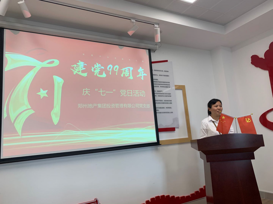 為熱烈慶祝建黨99周年,激發(fā)公司廣大黨員的責任感、榮譽感和使命感,鄭州地產(chǎn)集團投資管理有限公司黨支部開展慶祝建黨99周年·“七一”黨日活動。在黨的生日這天,組織全體黨員重溫初心承諾、學習理解黨的文化內(nèi)涵、講述家風傳承故事。