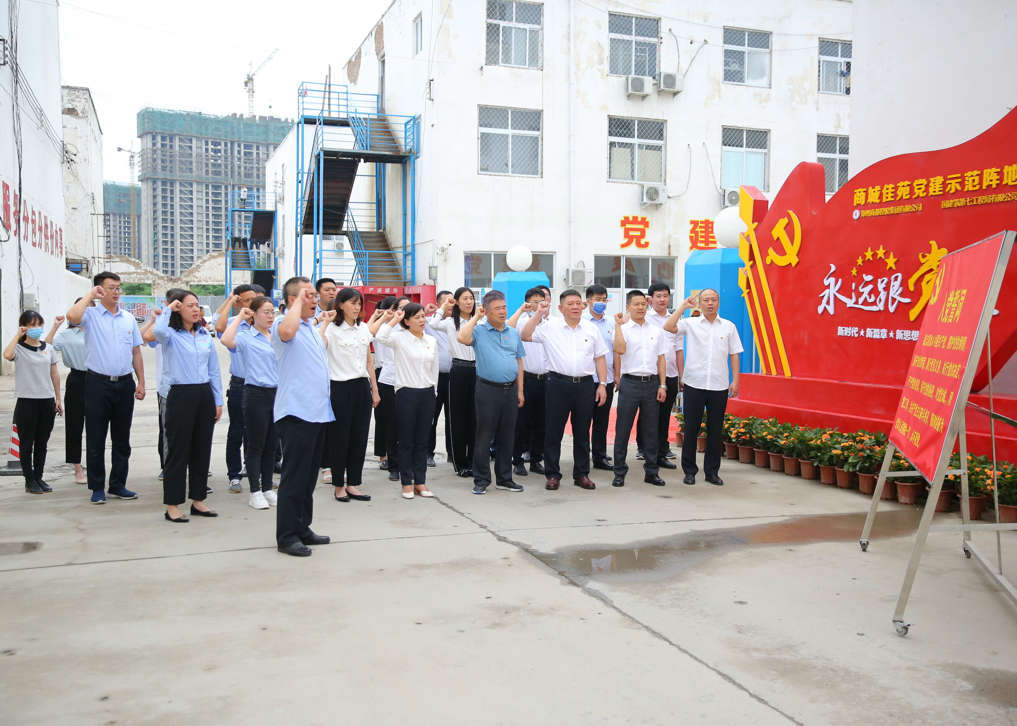 7月1日,在這個美好而極富紀(jì)念意義的日子里,為慶祝中國共產(chǎn)黨成立99周年,中共鄭州商城佳苑項目臨時支部委員會成立大會暨揭牌儀式在鄭州管城回族區(qū)商城佳苑項目部舉行。
